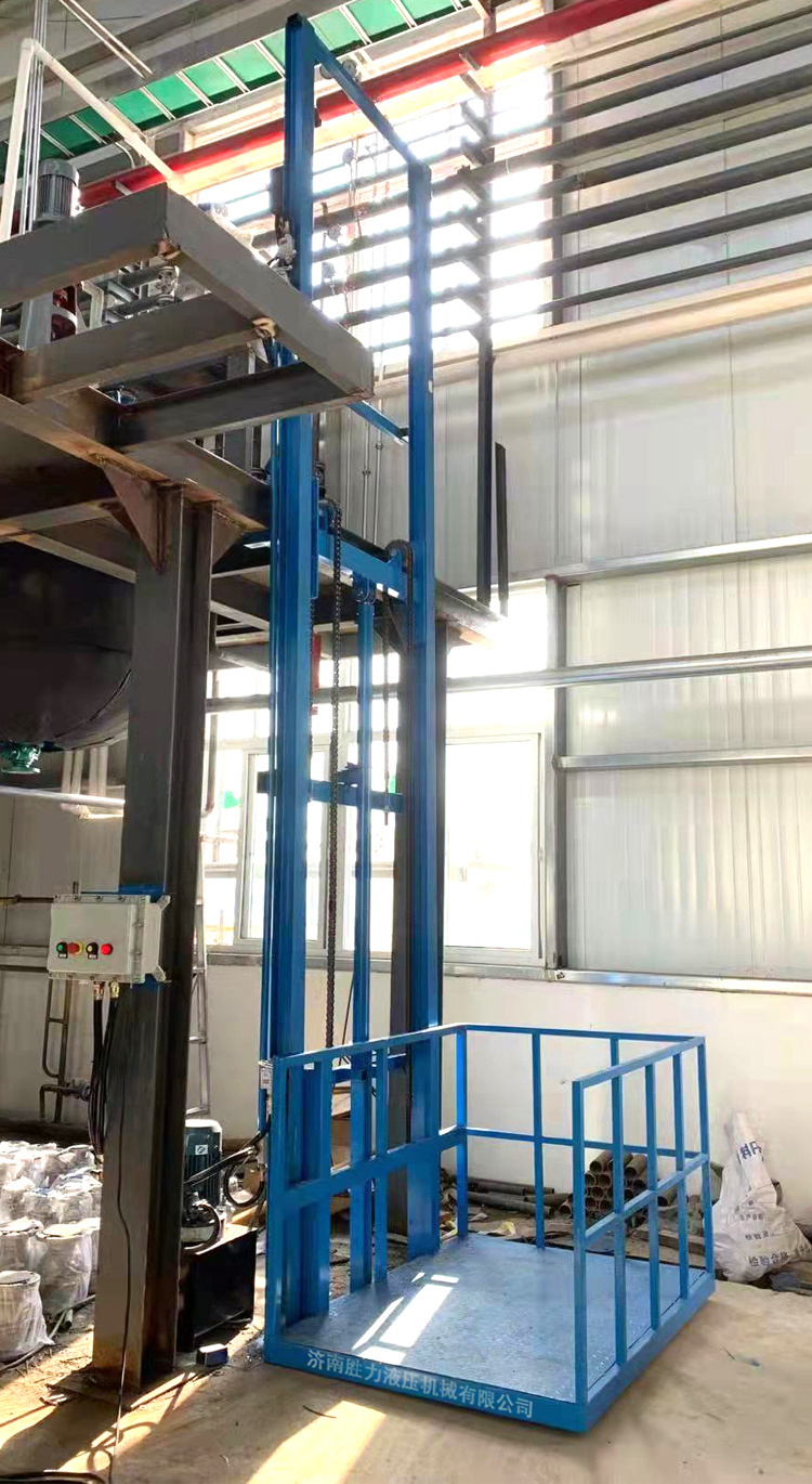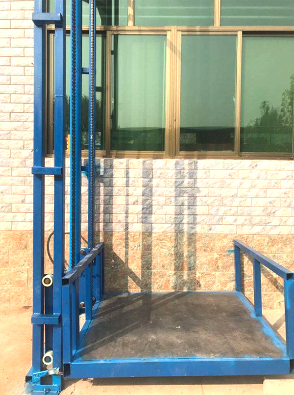 小型單軌式液壓升降貨梯是由導(dǎo)軌、臺(tái)面、鏈條、油缸、泵站、控制系統(tǒng)等組合而成的一種常見的液壓貨梯。