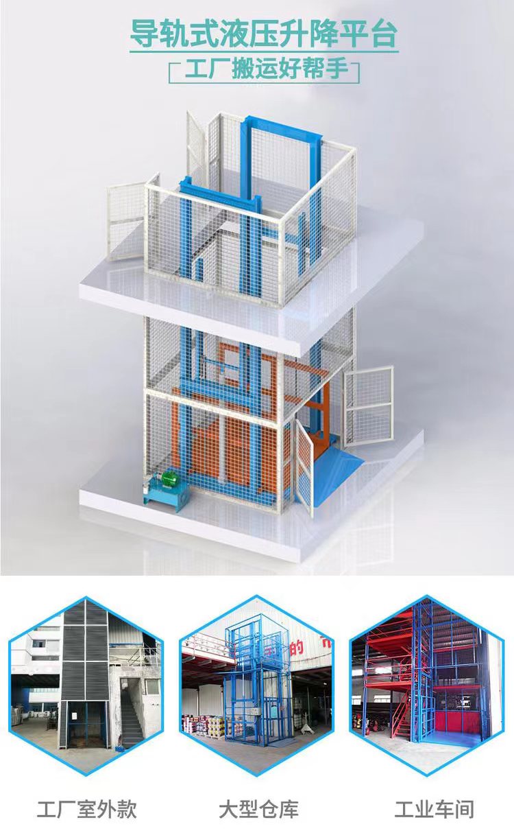 防爆液壓升降貨梯的載重量可以在0.5噸至100噸范圍內(nèi)定制,提升高度根據(jù)現(xiàn)場的實際高度來定做,平臺尺寸是根據(jù)客戶的貨物尺寸或預留的洞口尺寸來定做。防爆液壓升降貨梯的安裝環(huán)境不受限制,它不需要井道,只需在每一層開一個洞口就可以安裝。室內(nèi)室外均可安裝使用。如需貨梯臺面與地面平齊可挖20公分深的地坑,如現(xiàn)場條件不允許挖坑,我們會配套做一個斜坡,方便客戶上下貨。