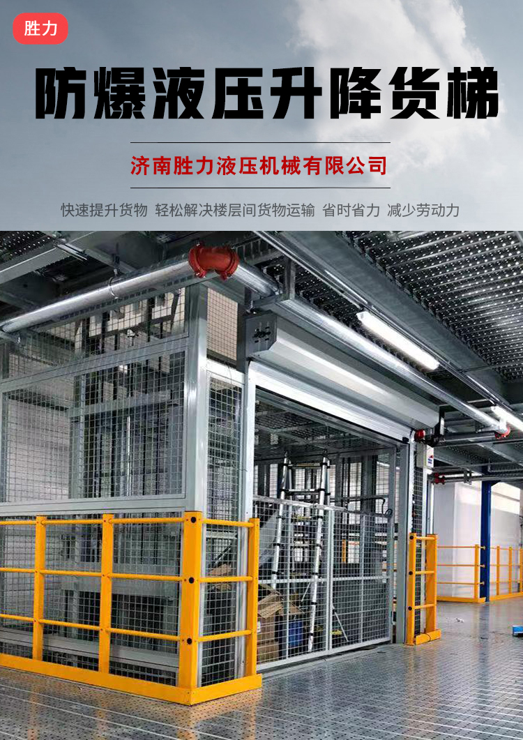 防爆液壓升降貨梯是一種由導軌、鏈條、油缸、液壓泵站、電控系統(tǒng)組合而成的液壓升降平臺,因此也可以稱為導軌式升降作業(yè)平臺,其主要用途是把貨物運送到不同的樓層,是替代傳統(tǒng)電梯的理想提升平臺設(shè)備,防爆液壓升降貨梯大多用于化工廠、制藥廠、煤礦等需要防爆的企業(yè)。 防爆液壓升降貨梯的防爆等級大多為ExdIIBT4,也可根據(jù)客戶要求定制其他防爆等級。