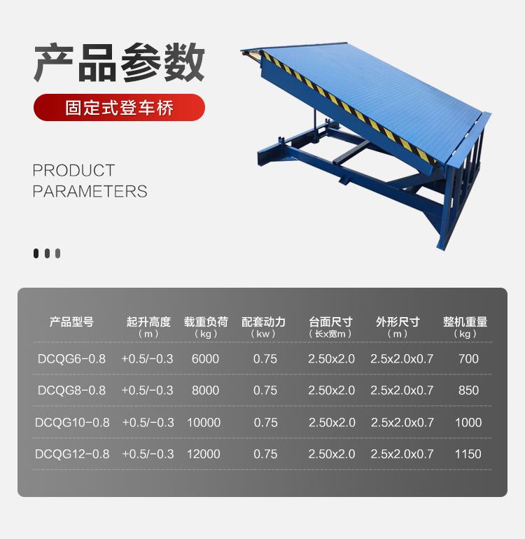 固定式登車橋是與倉(cāng)儲(chǔ)月臺(tái)一起的裝卸輔助設(shè)備,本設(shè)備與月臺(tái)一體,可根據(jù)貨車車廂不同高度調(diào)節(jié)即可調(diào)高也可調(diào)低,它的高度調(diào)節(jié)功能使貨車與庫(kù)房的貨臺(tái)之間架起一座橋梁,方便叉車駛?cè)胲噹麅?nèi)部進(jìn)行貨物的批量裝卸。設(shè)備采用進(jìn)口液壓泵站,兩側(cè)設(shè)有防軋裙板,工作更加安全,僅需單人作業(yè),即可實(shí)現(xiàn)貨物的快速裝卸。固定登車橋可使企業(yè)減少大量勞力,提高工作效率,獲取更大經(jīng)濟(jì)效益。固定登車橋被廣泛應(yīng)用在裝卸車頻繁、車型不一的大型企業(yè)、倉(cāng)庫(kù)、車站、碼頭、倉(cāng)儲(chǔ)物流基地、郵政運(yùn)輸、物流配送等。